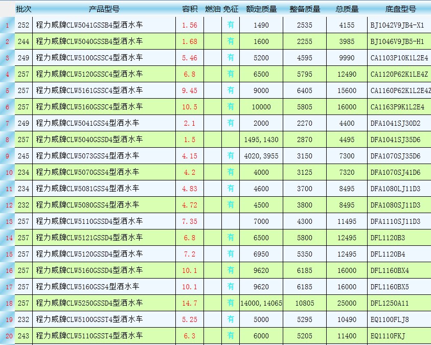 湖北程力國四灑水車公告有哪些型號