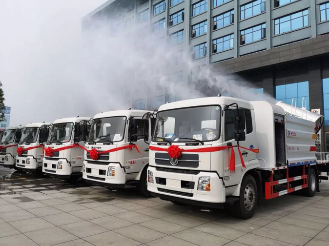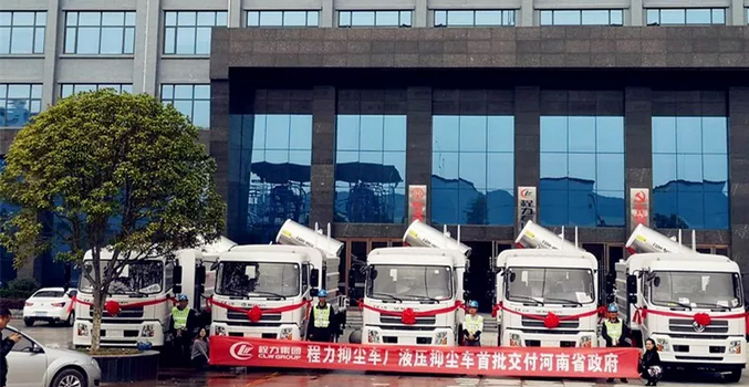 程力一體化液壓多用途智能抑塵車受到市場(chǎng)熱捧,河南省政府采購(gòu)湖北程力一體化液壓多用途智能抑塵車首批交付 壯觀場(chǎng)面: