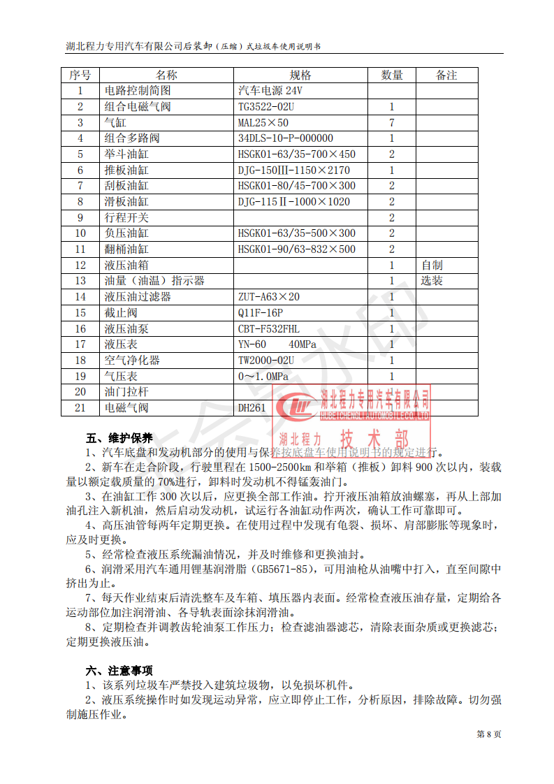 湖北程力壓縮垃圾車如何操作使用說明書